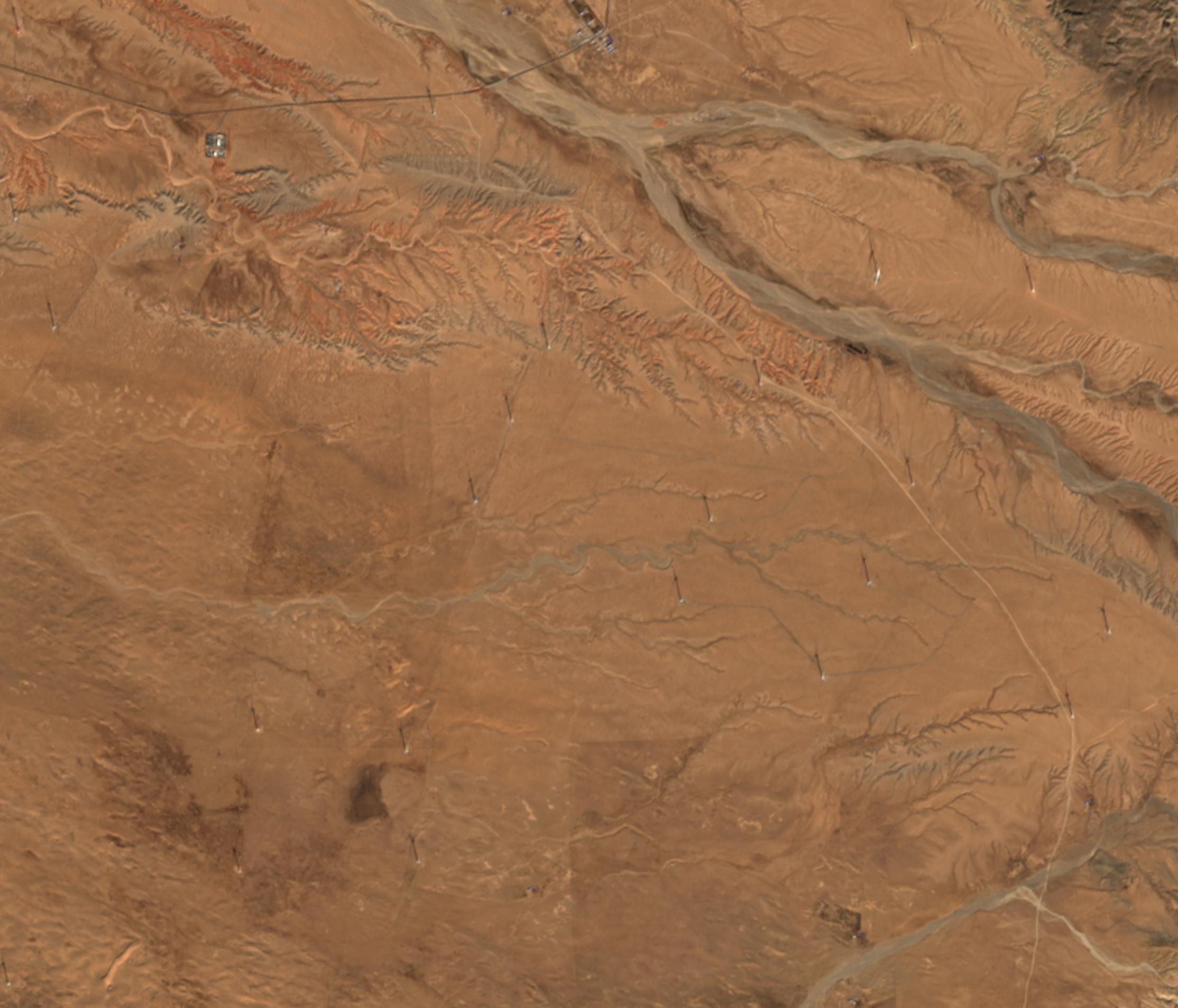 Even though Sentinel-2 imagery has a much lower resolution, it can help you to verify data from other datasets because, for many regions, it is the most recent dataset available. Depending on the size of the project and background, it can be used to verify and map 400 kV lines, larger substations, solar parks and even wind turbines.